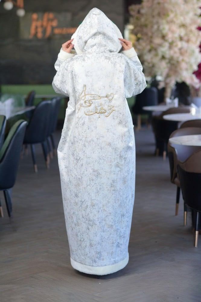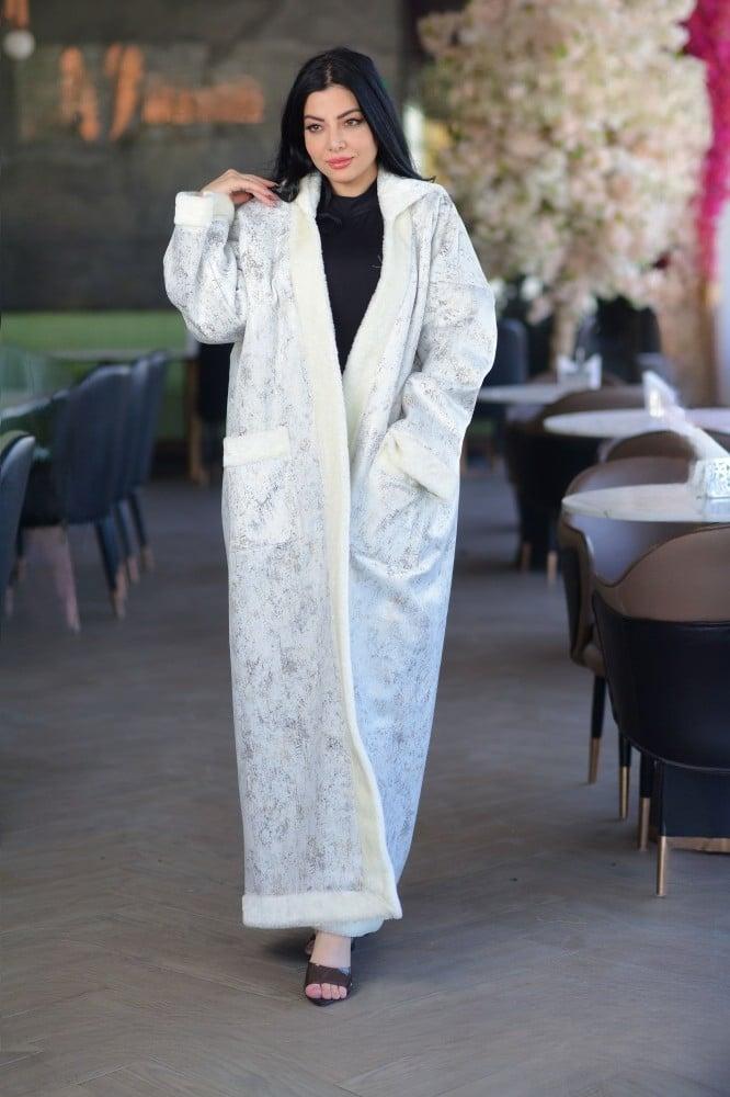 مصنوع من خامة فرو ناعمة وفاخرة تمنحك راحة ودفء في الأجواء الباردة،مع لمسات تصميم عصرية وتطريز ذهبي على الظهر يضيف لمسة من الفخامة