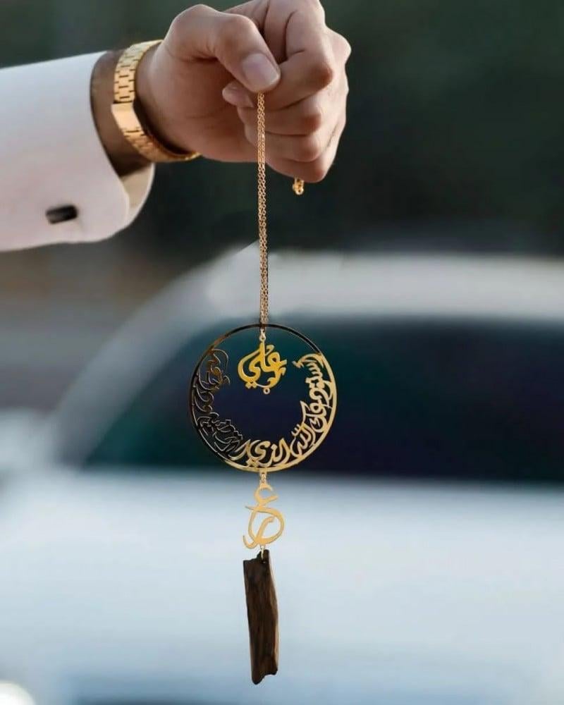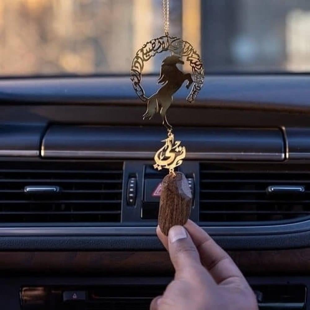 تعليقة سيارة عود بالاسم مع رسمة الخيل