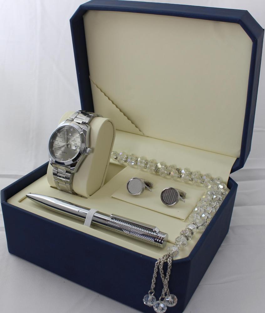 مكونة من ساعة رجالية ضمان سنه ماء مكينة بطارية اي خلل فني