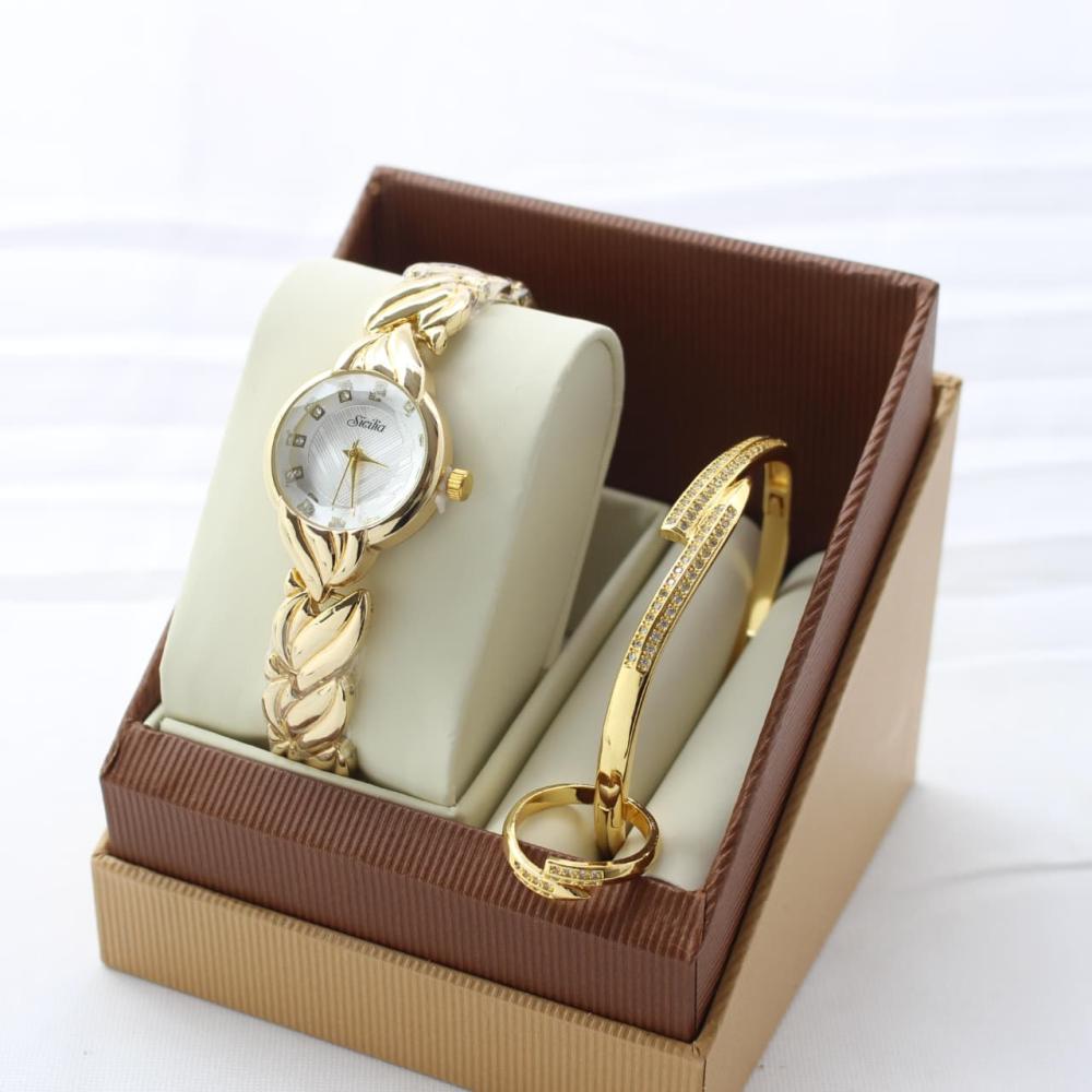 اكسسوارات نسائية من متجر التميز العرض مكون من ساعة نسائية رش فصوص سهره أسوارة زركون رش فصوص خاتم زركون رش فصوص علبة مميزة نفس الصورة تماما عرض متجرالتميز لا يفوتكم